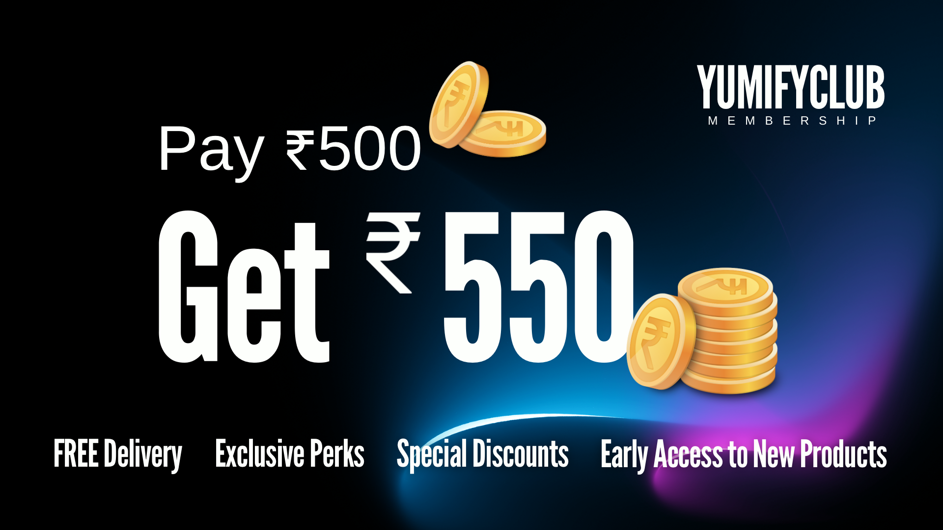 Along with your wallet balance, you enjoyFREE delivery, exclusive member perks, special discounts, and early access to new Yumify products.