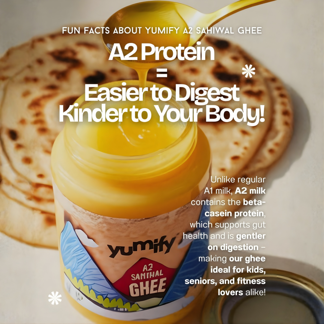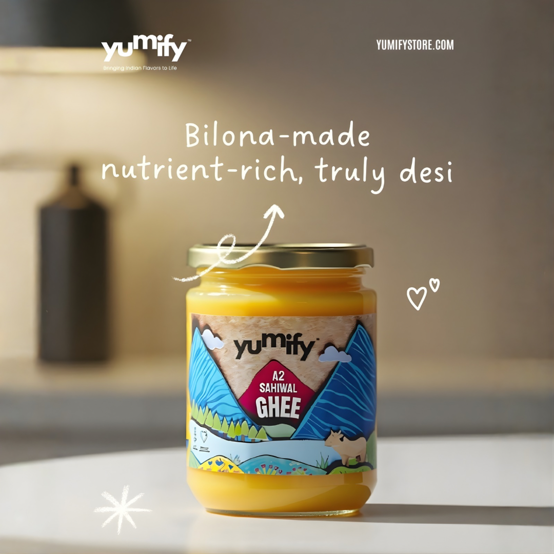 Yumify A2 Sahiwal Ghee is crafted from the finest Sahiwal cow milk using the traditional bilona method — no shortcuts, no additives. Naturally rich in A2 protein, healthy fats, and essential nutrients, this ghee fits effortlessly into your modern lifestyle.